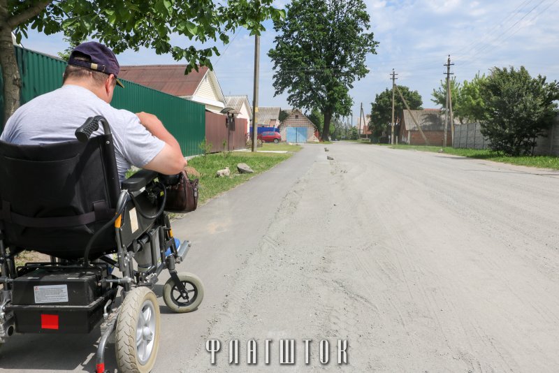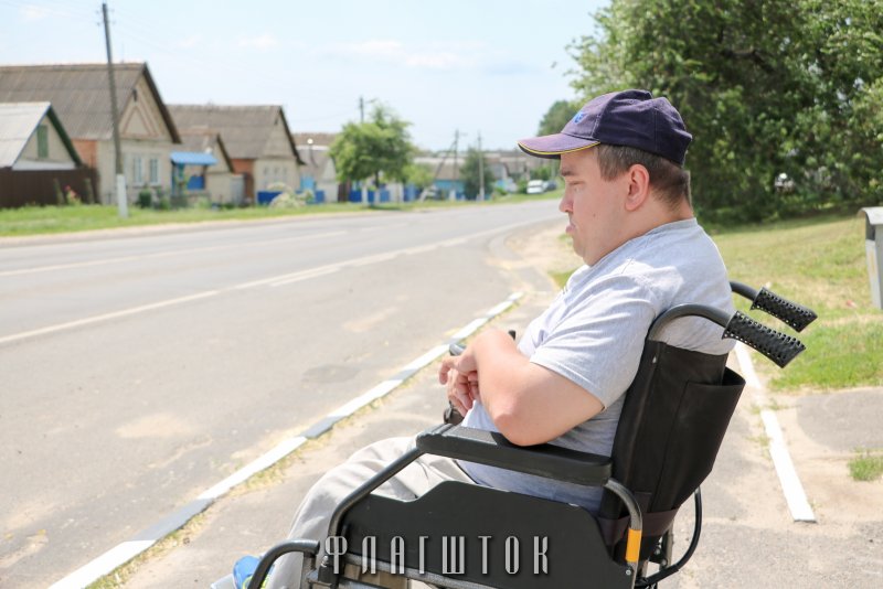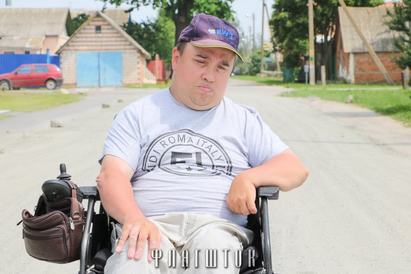 Уладзімір з дзяцінства перасоўваецца ў вазку, але абмяжоўваць сябе сядзеннем дома ніколі не збіраўся і любіць выбірацца «ў людзі». Рабіць гэта самастойна ў Пакалюбічах атрымліваецца не паўсюль: большасць вуліц, як і сто год таму, дагэтуль неасфальтаваныя.