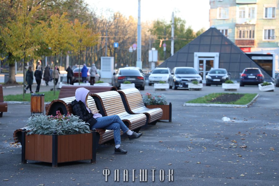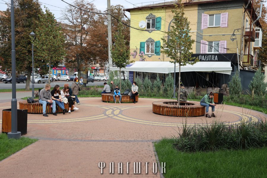 Тут жа была арганізавана зона адпачынку наўпрост на асфальтавым тратуары з дапамогаю лавак і клумб