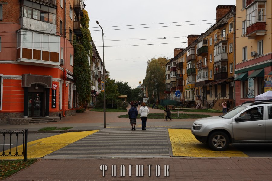 На галоўных вуліца Чарнігава з'явіліся сучасныя пешаходныя пераходы, зробленыя ў адным узроўні з тратуарам