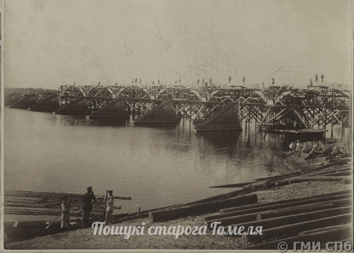 Краязнаўцы з гомельскага гістарычнага пабліка «Пошукі старога Гомеля» знайшлі фотаздымкі будоўлі маста праз Сож. Здымкі з электроннага архіву Дзяржаўнага музея гісторыі Санкт-Пецярбургу. У апісанні файла паметка з пытальнікам: «1880-я гады?»