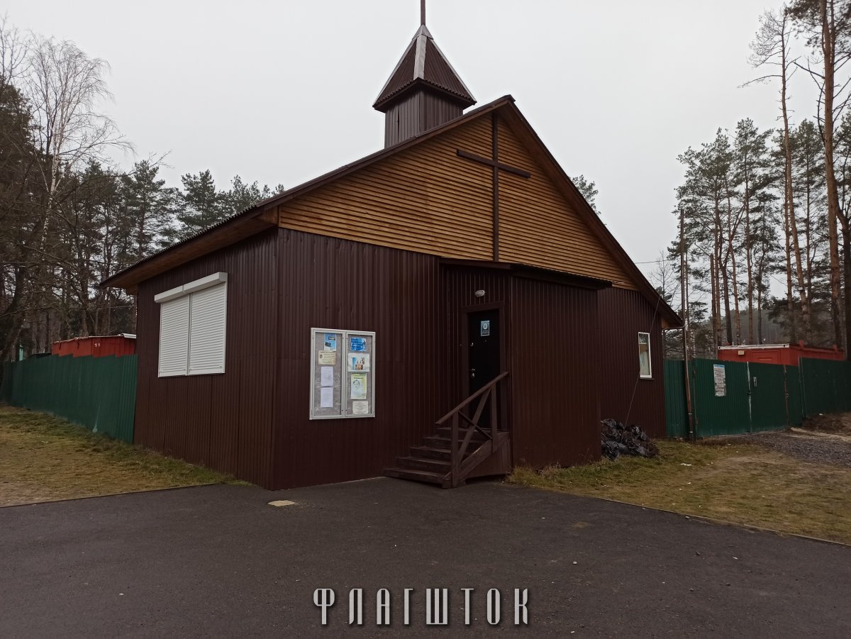 Костел Успения Пресвятой Девы Марии ранее стоял в центре Гомеля недалеко от того места, где ныне расположен флагшток. В 1940-м году коммунистические власти костел взорвали. Как гласит городская легенда, дом, который позже построили из костельного кирпича, первым пострадал при бомбежке во время Второй мировой войны.