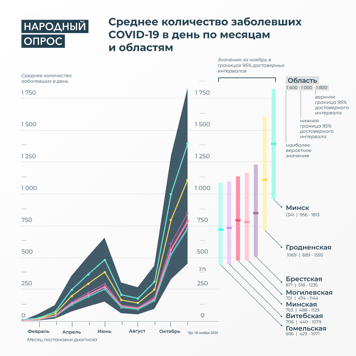 В ноябре 2020 года проектом «Народный опрос» было проведено альтернативное масштабное исследование заболеваемости COVID-19 в Беларуси. Для получения результатов исследователями было обработано 25 500 анкет, собранных через интернет.