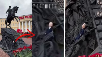 На открытии подарочного памятника Флагшток заметил несколько необычных деталей Сразу после церемонии у основания памятника появилась куколка человечка в пиджаке. Что это за ритуал вуду редакции установить не удалось. Российским чиновникам вручили ленты «Яблоневый цвет», а имперские георгиевские ленты никто не надел. Глава Русского дома Маржухин, ранее распространявший символ российской агрессии 2014 года в Украине, на этот раз предпочёл не надевать никаких лент. Место беларусскому языку на мероприятии не нашлось — вся агитация была выполнена исключительно на русском. Логотип «Победа», установленный на одноимённом проспекте, оказался практически копией российского — видимо, собственного дизайнерского решения не нашлось. Для принятия парада чиновникам на площади Восстания потребовалась ступенчатая трибуна. Редакция предполагает, что вскоре для этих целей может понадобиться и подобие мавзолея. t.me/flagshtok