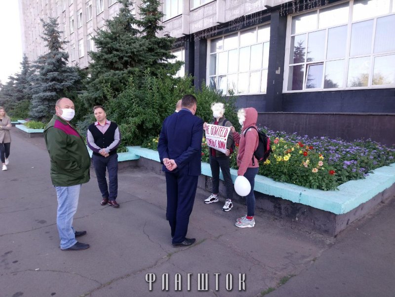 Подписчики «Флагштока» прислали несколько фотоснимков, на которых запечатлен пикет возле проходной предприятия. По словам автора фото, заводчане тепло реагировали на акцию молодежи, обнимали участников пикета и выкрикивали «Жыве Беларусь!». А вот представители администрации пытались переубедить организаторов пикета в том, что «нужно не митинговать, а собирать урожай».