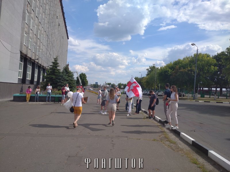 Некалькі дзясяткаў гомельцаў пераважна маладога веку заклікалі працоўных з буйнога прадпрыемства “Гомсельмаш” далучацца да агульнанацыянальнай забастоўкі. На заклікі рэагавалі асобныя працоўныя, якія махалі рукамі з адчыненых вокнаў і выкрыквалі “Жыве Беларусь!”.