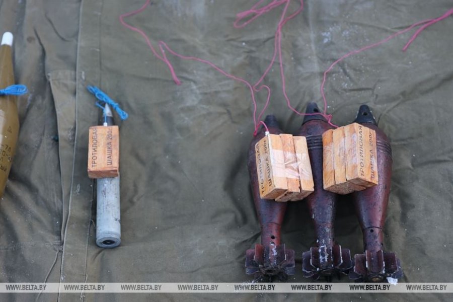Военные РБ уничтожают российские боеприпасы, найденные на территории Беларуси. Флагшток сделал такое заключение, изучив фотографии госиздания БелТа в недавно опубликованном материале: «Военные инженеры под Минском провели занятия по разминированию».