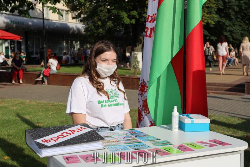 Сярод сцягаў прадзяржаўных грамадскіх арганізацый была заўважная копія франтавога штандару. Што гэта павінна было сімвалізаваць, нашаму карэпандэнту высветліць не атрымалася.