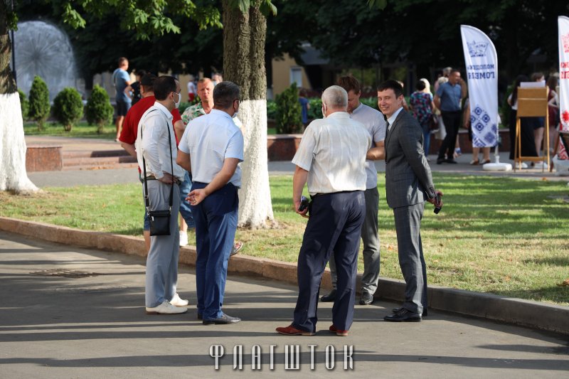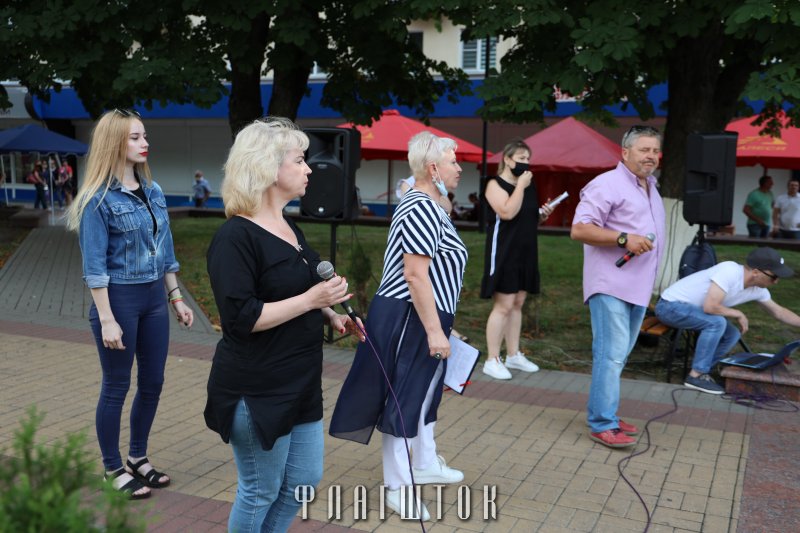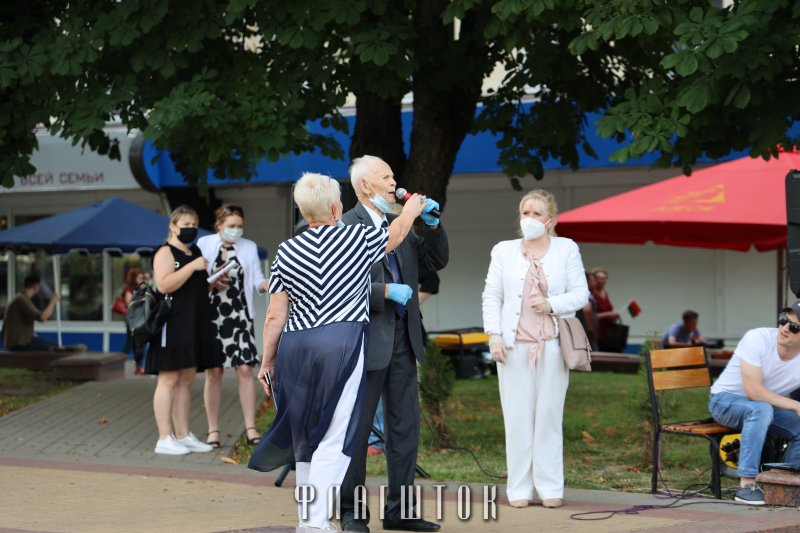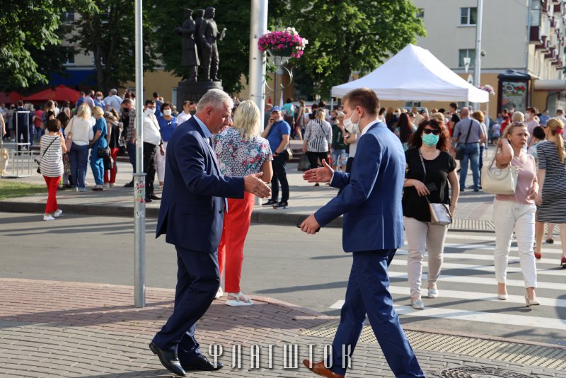 На мерапрыемстве асобна ад працоўных калектываў можна было заўважыць гурткі з гарадскіх чыноўнікаў і кіраўнікоў