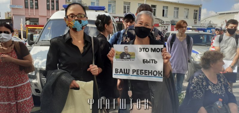 – Дочь задержали вчера около восьми вечера. Где — не знаю, – рассказала «Флагштоку» женщина. – Ей разрешили позвонить, она успела сообщить, что ее забрали и везут в РОВД на Крестьянской. Больше связи не было. Позже она позвонила еще раз, буквально на секундочку, сказала, что ее перевели в ИВС на Международной. Сказали, что сегодня будет суд. Я была в суде, там пока ничего не слышно. Я подошла сюда, к месту проведения этой акции, и случайно увидела, что ее привезли на машине, и снова увезли.