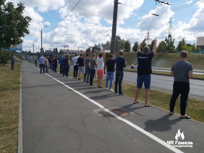 На акции протеста вышли гомельские авторынки. По улицам Ефремова и Бакунина люди выстроились в живые цепи. На плакатах - «Уходи!».