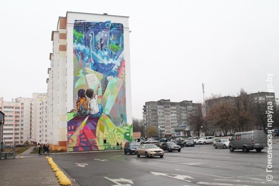 У той час, калі на Гомельшчыне яшчэ стваралі не ваенныя, а мірныя муралы, у Мазыры на фасадзе шматпавярховіка па Прытыцкага, 51А з'явілася яркае графіці «Летуценнікі».