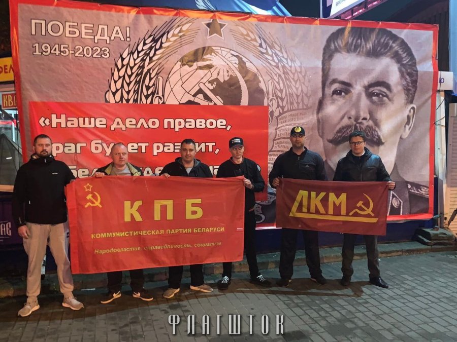 Изображение Сталина появилось в центре Гомеля в преддверии празднования очередного Дня победы. Рекламный баннер площадью примерно 6х3 метра был размещен возле торгового павильона на улице Катунина. Огромный плакат сразу стал местом для фотосессий приверженцев коммунистической идеологии.