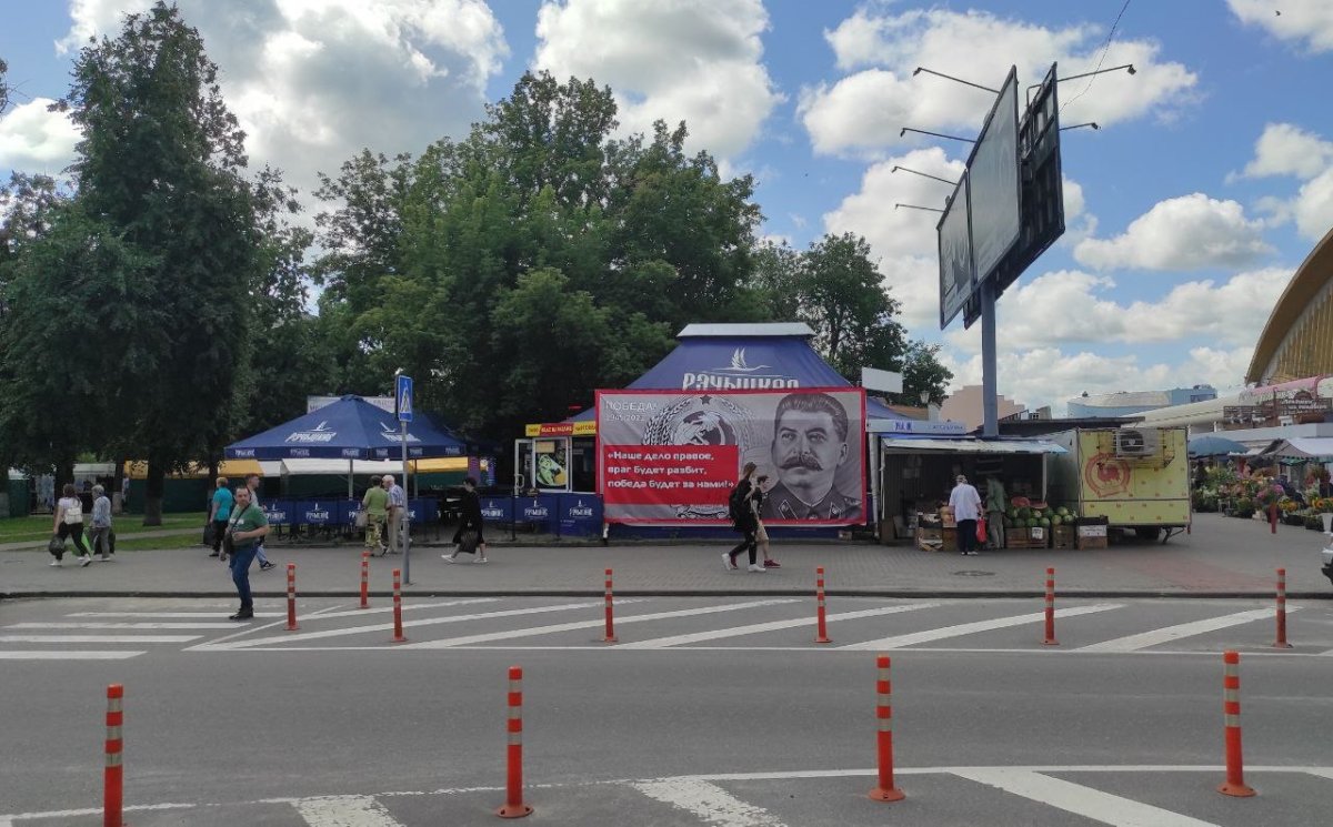 Уже несколько месяцев в Гомеле возле Центрального рынка висит рекламный баннер с изображением Сталина. Флагшток выяснил, прошел ли одобрение местных чиновников этот политический плакат.