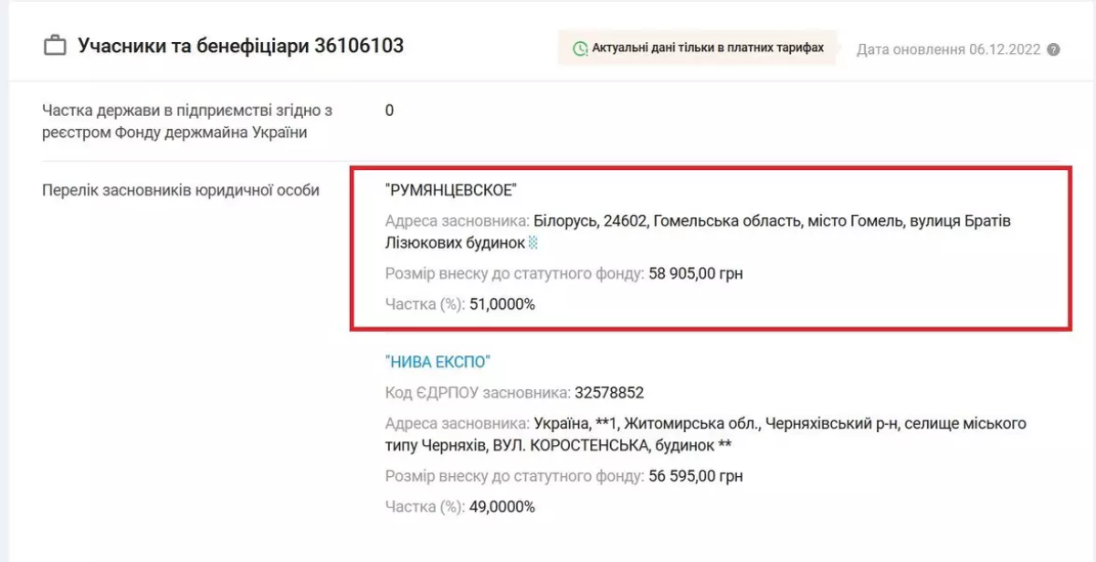 В последнее время хозяйственную деятельность беларусско-украинское предприятие не ведет, однако компания из Гомеля продолжает значиться в собственниках. Это и послужило причиной скандала. Несмотря на то, что Беларусь оказалась страной-соагрессором в отношении Украины, ООО «Белорусско-украинская компания» до сих пор не ликвидирована. При этом украинским соучредителем ООО «Белорусско-украинская компания» является предприятие «Нива Экспо», принадлежащее депутату Житомирской областной Рады Андрею Руденко. Директором совместного предприятия является его сын Александр.
