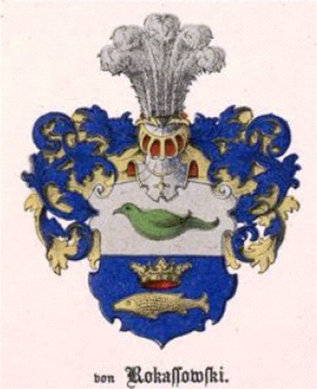 Шляхетский герб «Гляубич» («Glaubicz») польского рода Рокосовских: разделённый надвое щит, в верхнем части которого птица на серебряном поле, в нижней – на голубом поле золотая корона, а под ней золотая рыба.