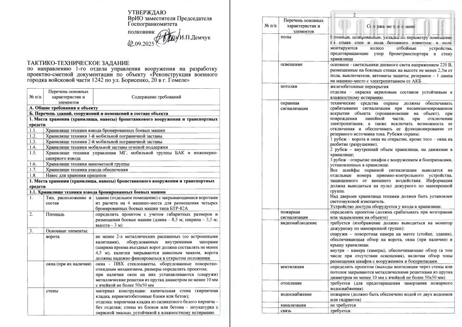Согласно с техзаданием, которое утвердил Госпогранкомитет в сентябре 2025 года, реконструкция коснется бытовых помещений, административного корпуса, зала для занятий, но самое интересное — в перечне зданий, сооружений и помещений в составе объекта.