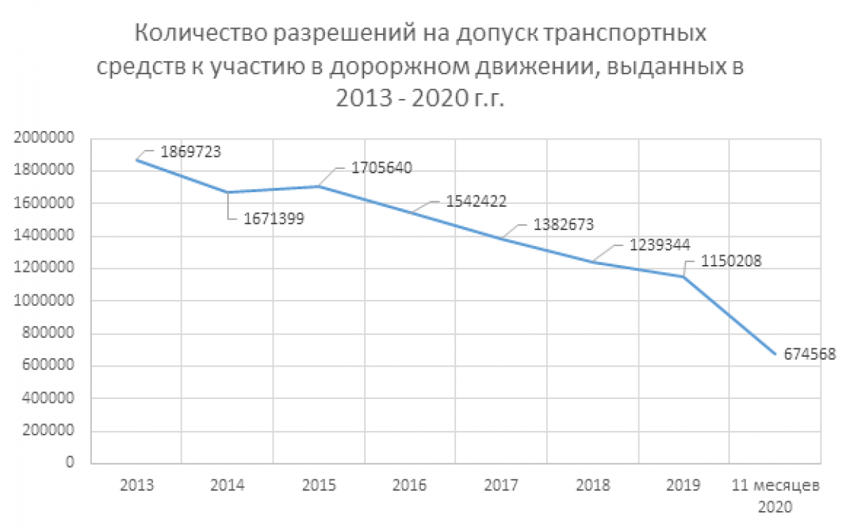 Количество выдаваемых разрешений на допуск транспортных средств к участию в дорожном движении за последние 8 лет сократилось почти в три раза. Такую неутешительную статистику приводит УП "Белтехосмотр".