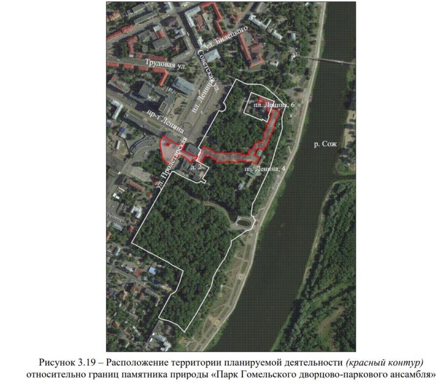 Также в документе оговаривается, что участок находится частично в границах ботанического памятника природы республиканского значения «Парк Гомельского дворцово-паркового ансамбля» и в границах недвижимых материальных историко-культурных ценностей.
