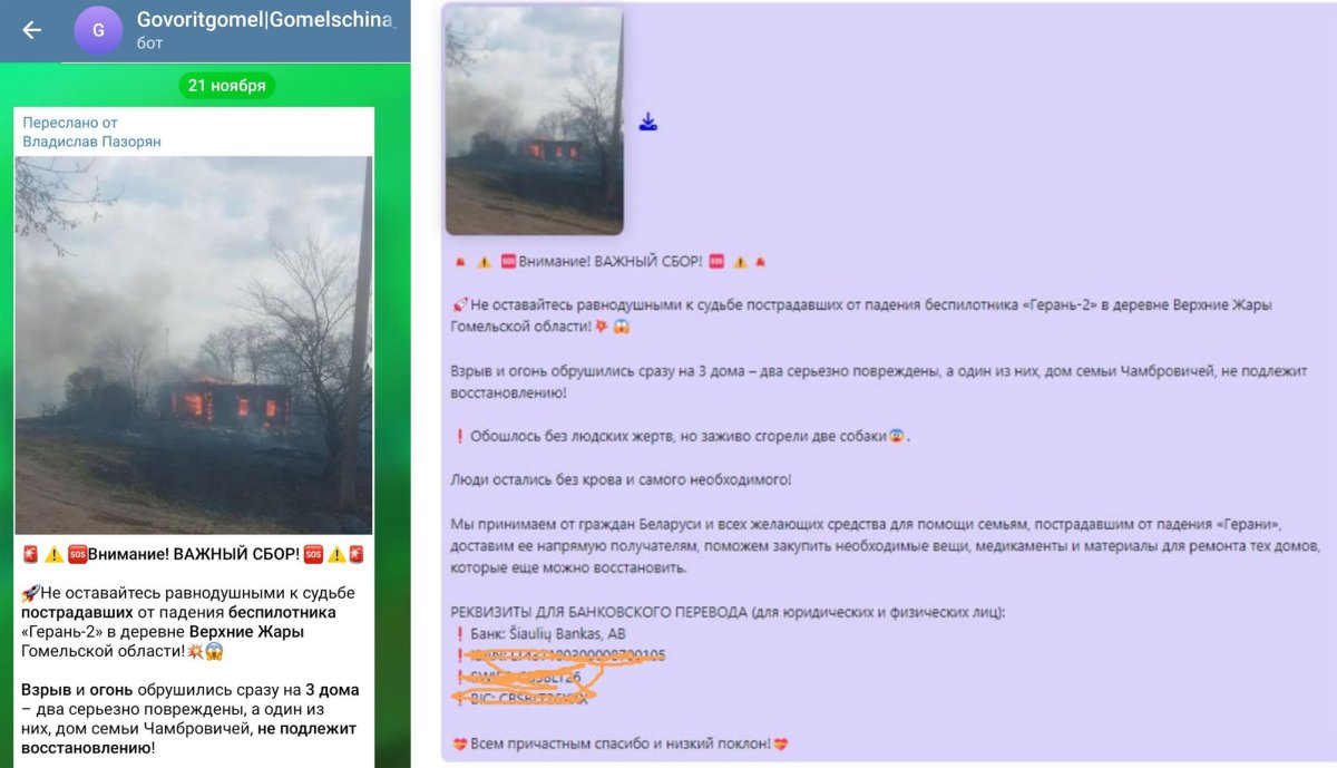 Примечательно, что автор сообщения показал свою осведомленность местными реалиями: один из разрушенных домов якобы принадлежал семье Чамбровичей (по фамилии застреленного в 2022 году в соседней деревне гомельского ветврача).