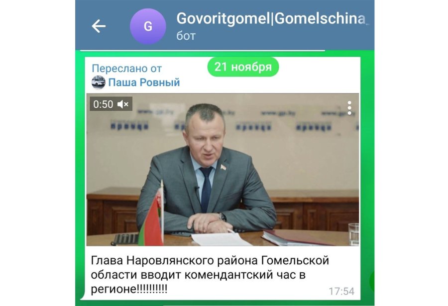 Информация о вбросе из тг-каналов Говорит Гомель и Народный антифейк от 21 ноября