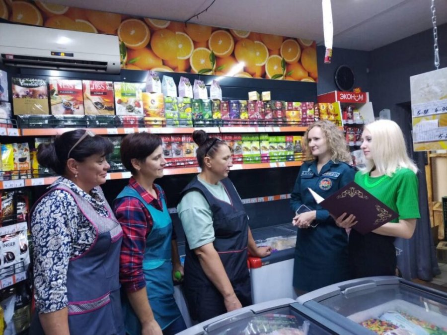 Например, в Лоеве информационно-пропагандистские группы райисполкома встретились с работниками ЧТУП «Полевой С.В.», сообщила районка. На фото позируют три работницы частного продуктового магазина и двое выступающих.