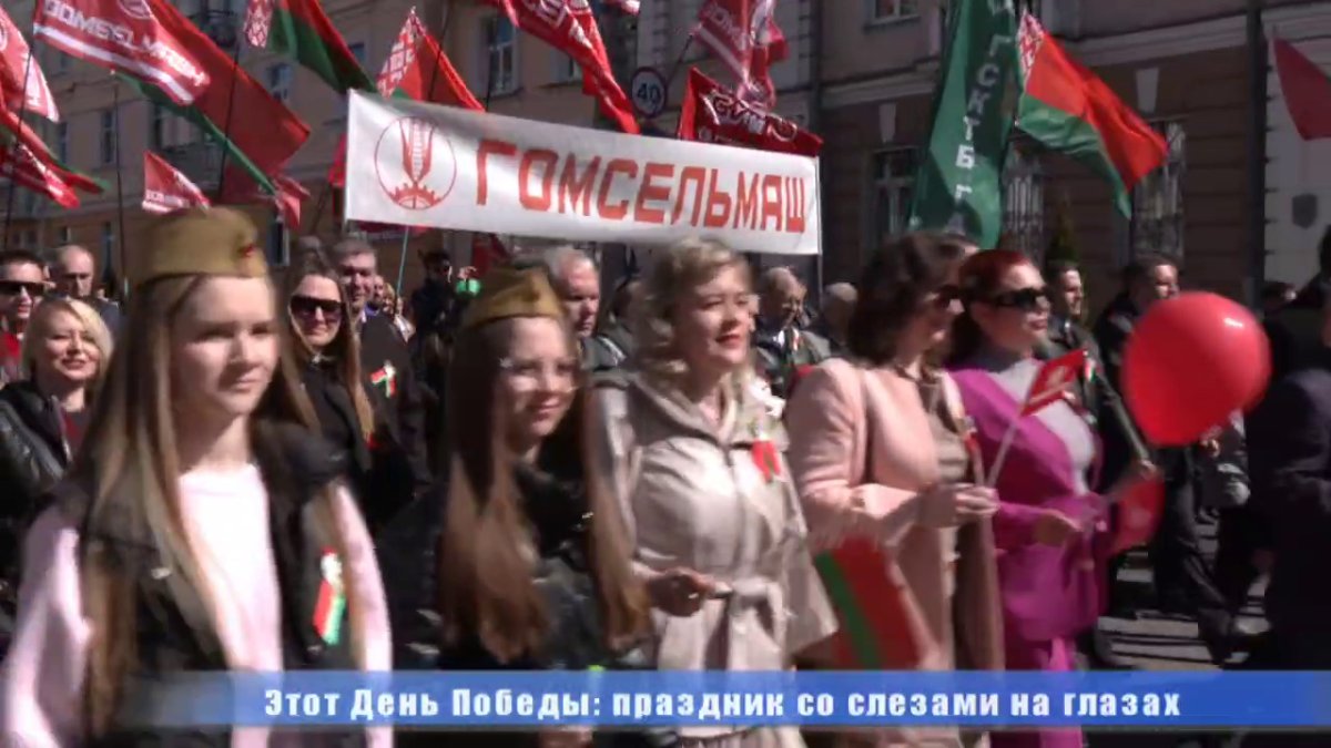 Шествие трудовых коллективов 9 мая 2024 года (кадр видео Гомельского телевиденья)