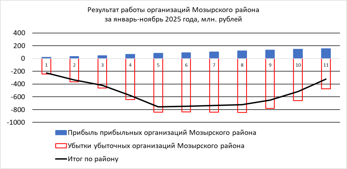 Выход декабрьского сборника Гомельского областного статистического комитета в очередной раз напомнил, что Мозырский район находится в состоянии чистого убытка 23 месяца подряд. В 2025 году эта динамика была особенно резкой. Учитывая, что показатели Мозырского района почти полностью формируются нефтеперерабатывающим заводом, статистика района превращается в историю болезни одного предприятия.
