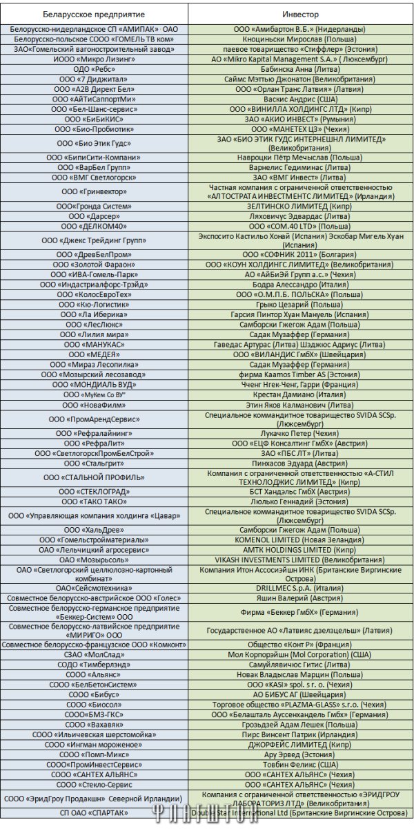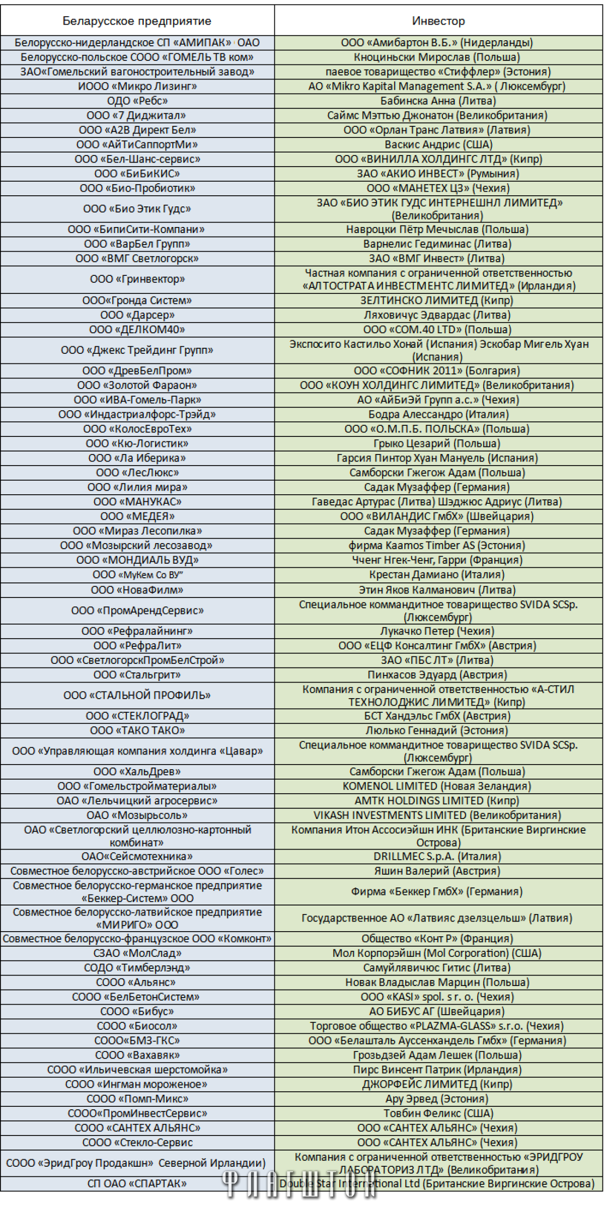 В перечне оказалось несколько крупных госпредприятий. Небольшие пакеты акций и регистрация в офшорной зоне говорит о том, что данные инвесторы покупали акции беларусских предприятий в погоне за дивидендами или в спекулятивных целях. Теперь такая возможность закрыта.