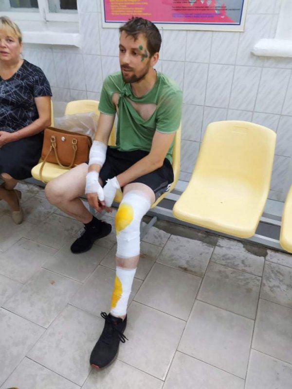 В Гомеле с применением силы задержали активиста Дмитрия Ивашкова. После этого его отвезли в больницу, чтобы зашить раны на ноге.