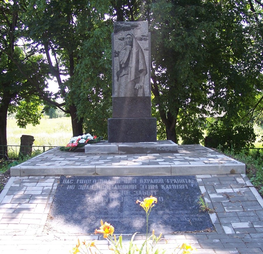 Сейчас в Первомайске — на месте массового захоронения расстрелянных и сожженных нацистами жителей — стоит гранитная плита с изображением скорбящей женщины.