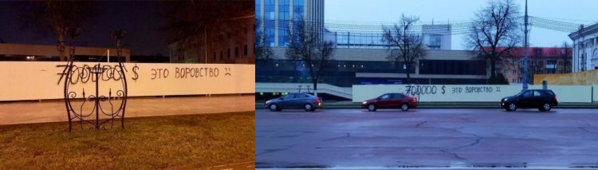 Надписи на строительной площадке флагштока в Гомеле, архивное фото