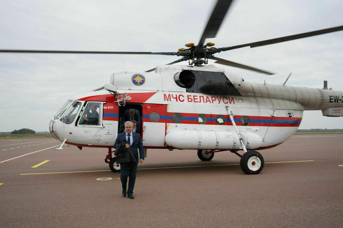 Председатель Гомельского горисполкома Владимир Привалов оценивает благоустройство города с использованием вертолета. Фото: Телеграм-канал Владимир Привалов. Официально