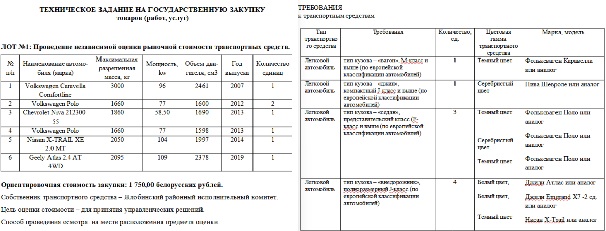 Сопоставление списка арендуемых автомобилей с располагаемым автопарком на примере Жлобинского райисполкома