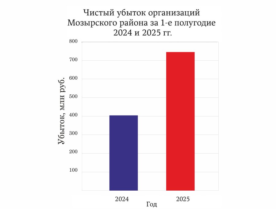 Оказалось, что па данным за первое полугодие 2025 года рентабельность реализованной продукции, товаров и услуг организаций Мозырского района составила рекордные минус 4,2 процента. Это самый худший показатель среди промышленно развитых «больших» районов Гомельской области. За тот же период прошлого года рентабельность тоже была отрицательной, но заметно меньше — 0,9%. Таким образом, Мозырский район на 3,3% ухудшил прошлогодний показатель.