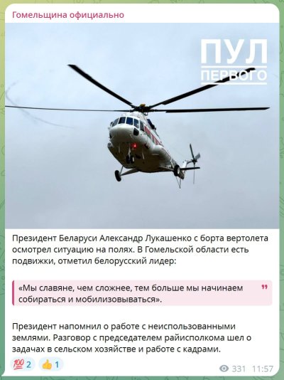 Маркиз Карабас Лукашенко только что проинспектировал поля Гомельской области с вертолёта — такую заметку распространили госресурсы после прилёта диктатора в Мозырь на открытие моста Лукашенко только что проинспектировал поля Гомельской области с вертолёта — такую заметку распространили госресурсы после прилёта диктатора в Мозырь на открытие моста