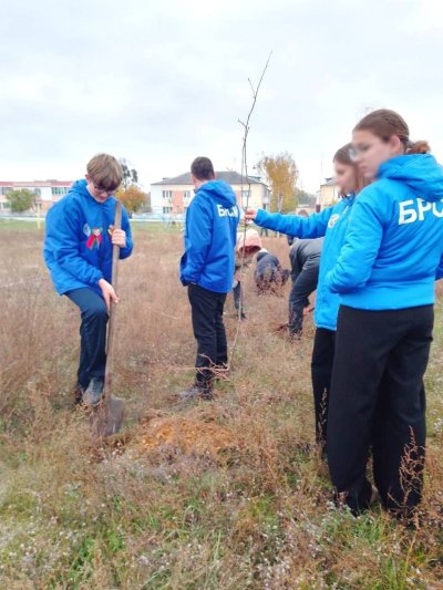 На изображении виден трактор «Беларус» с сельскохозяйственным прицепом — распределителем минеральных удобрений. Судя по кадру, это установка