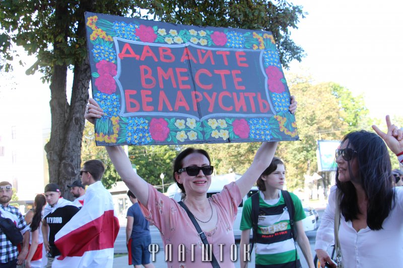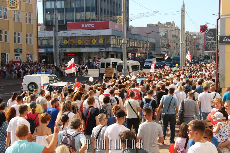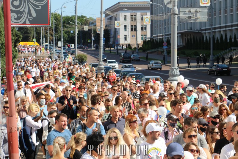Сегодня прошел большой марш беларусов, несогласных с результатами выборов. Началось мероприятие на площади перед Новым Универмагом.