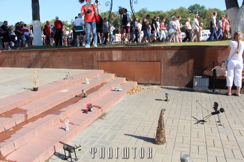 На площади перед "Белтелекомом" на ступеньках просто были расставлены детские подделки.