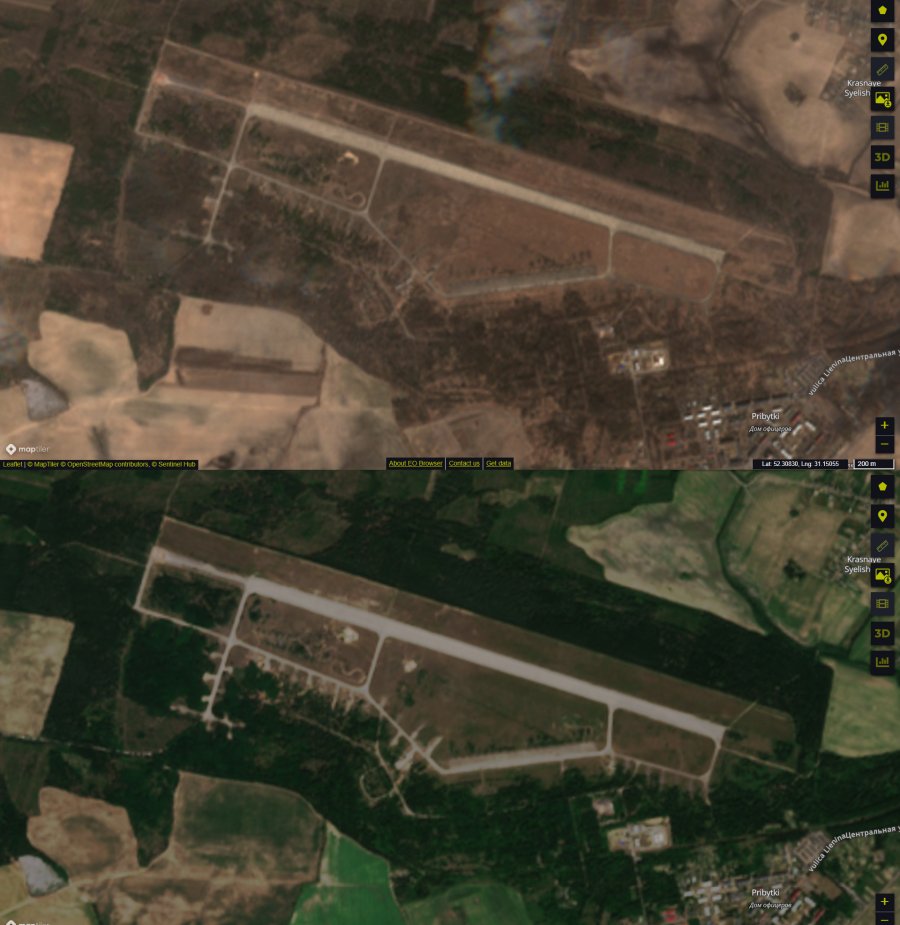 На последних доступных снимках, сделанных 3 июля в военном городке Зябровка, замечены образцы беларусской военной техники. Эта техника также могла быть пригнана с «усиления» беларусско-украинской границы в 20 километрах от аэродрома.
