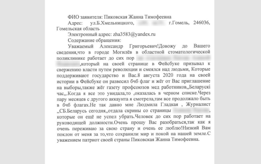 Блогер Андрей Паук позвонил гомельчанке Жанне Пиковской, представившись сотрудником Гомельского управления КГБ. Пиковская в разговоре сообщила, что пишет «обращения» в госорганы, чтобы наказать нелояльных режиму Лукашенко граждан. Флагшток собрал известные факты о Жанне Пиковской.