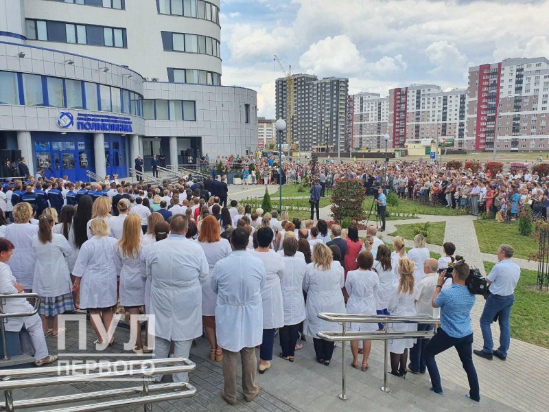 Недавно Александр Лукашенко присутствовал на открытии поликлиники на улице Мазурова, которая строилась в течение последних 11 лет. На встрече, если верить официальным данным, собралось около 1 тысячи человек.