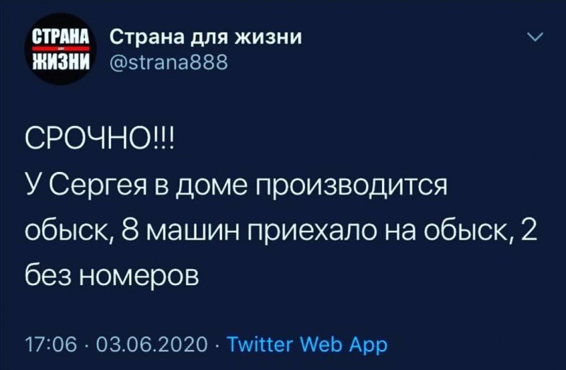 В доме и на телестудии Сергея Тихановского идет обыск 02.06.2020 | Политика Ряд аккаунтов в социальных сетях, связанных с ютуб-каналом Сергея Тихановского «Страна для жизни», сообщают об обысках, которые проводятся в данный момент на квартирах блогера и его жены, а также в арендуемой гомельской телестудии.